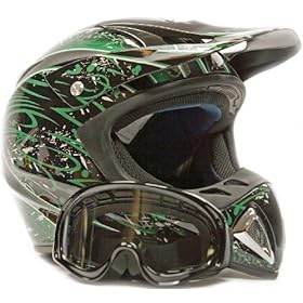 Adult Motocross Helmet & Goggles ATV Dirt Bike Motorcycle Green, Large: Automotive