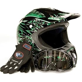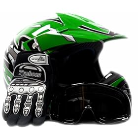 Youth Motocross ATV Helmet Dirt Bike MX , Gloves and Goggles Green, Small: Automotive