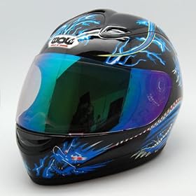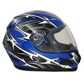 Blue Tribal Dual Visor Full Face Motorcycle Street Sport Bike Helmet DOT (Large): Automotive