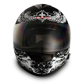 VCAN Blinc 136 Flat Black Medium Full Face Helmet with Dark Angel Graphics: Automotive