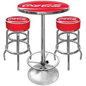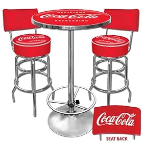 Trademark Ultimate Coca-Cola Dynamic Ribbon Gameroom Combo, 2 Stools with Backs and Pub Table: Sports & Outdoors