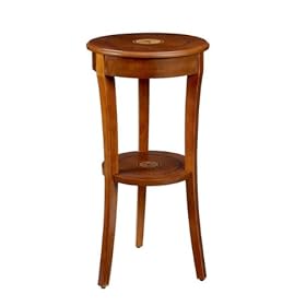 30" Marquetry Style Wooden Round Top Occasional Table: Furniture & Decor