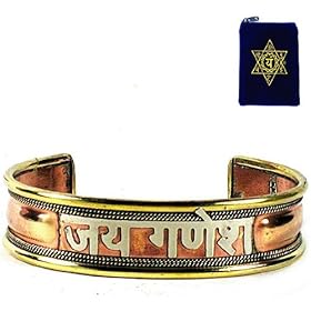 "JAI GANESH" COPPER HEALING BRACELET ~ 3 Metals Formula For Balance & Healing ~ Mantra Bracelet w/ Sanskrit Chakra Pouch: Home & Kitchen