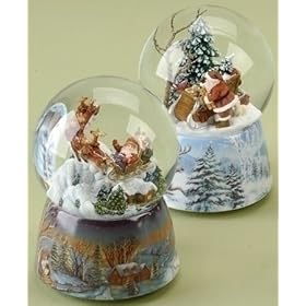 Set of 2 Musical Santa Claus with Sleigh Christmas Snow Globe Glitterdomes: Home & Kitchen