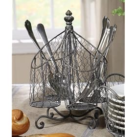 Shabby Cottage Chic Wire Cutlery Silverware Caddy: Home & Kitchen