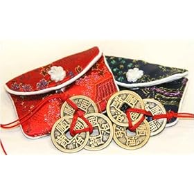 Amulet - Chinese Feng Shui Lucky Coins with Brocade Pouches - 2 sets: Everything Else