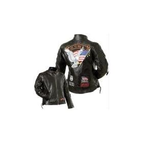 Diamond Plate Ladies Leather Moto JACKET- L: Home & Kitchen