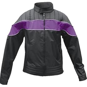 Ladies Purple/black Textile Riding Jacket 100% Nylon Water Resistant w/ Reflector Stripes: Automotive