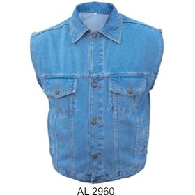 Mens 100% Cotton Blue Denim Vest W/Collar: Automotive