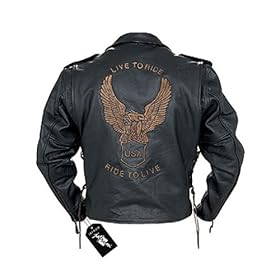 Motorcycle Jackets - Mens Leather Motorcycle Jacket with Flying Eagle MJ703: Automotive