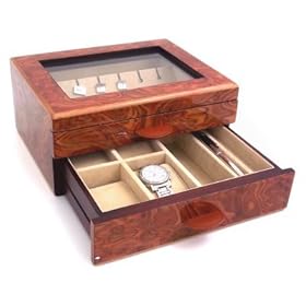 Bey-Berk Rainbow Burl High Gloss Lacquered Watch Valet with Cufflink and Pen Storage - 10.75W x 4.: Kitchen & Dining