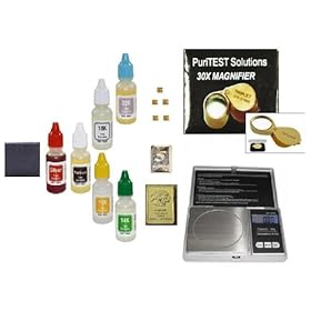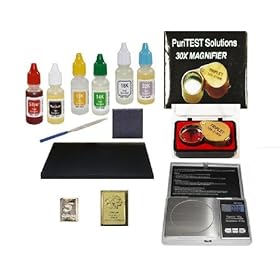 PuriTEST Pro Cash for Gold Kit- Also Test Silver,Platinum- Box of Acids Plus Scale, Accessories, and Fine Silver Sample: Kitchen & Dining