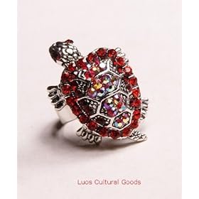Luos Beautiful feng shui Turtle Sterling Silver Ring with Red Crystals - Sr028: Kitchen & Dining