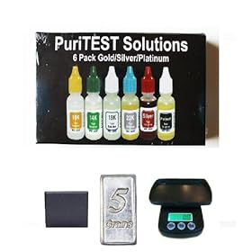 Puritest Platinum, Silver, Gold Testing Kit with Electronic Gram/Ounce Scale and Mini 5 Grains 999-fine Silver Bar: Home & Kitchen