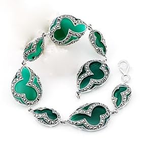 Sterling Silver Marcasite and Agate Red or Green or Black Color Bracelet Jewelry 20 G L:200mm: Kitchen & Dining