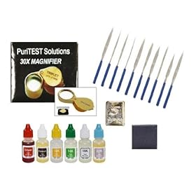Bulk Jewelry Supplies-Gold Silver Platinum Testing Kit-PuriTEST Acids, Stone, 10 Files, Loupe, 5gr Solid Silver: Home & Kitchen