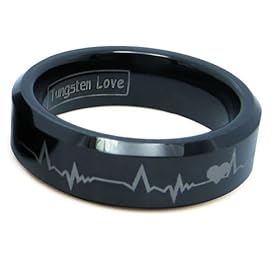 6mm Black Comfort Fit Tungsten Carbide Rings with Laser Forever Love Design Women"s Aniversary/engagement/wedding Band Size 7: Kitchen & Dining