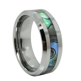 8mm Comfort Fit High Polish Tungsten Carbide Ring Men"s Aniversary/engagement/wedding Band with Abalone Inlay (Size 8-12 Available) Size 8: Kitchen & Dining