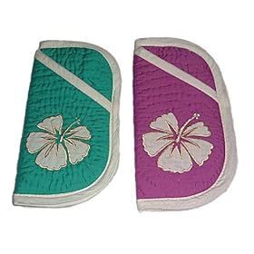 Quilted Hawaiian Hibiscus Flower Double Eyeglass Case- GREEN: Kitchen & Dining