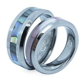 Matching Comfort Fit High Polish Tungsten Carbide Rings 8mm (Size 9,10,11,12 Available) with Abalone Inlay Inlay His & 6mm (Size 6,7,8 Available) with Pink Shell Inlay Hers Set Aniversary/engagement/wedding Bands: Kitchen & Dining