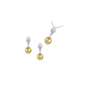 1.00 Ct Diamond & South Sea Golden Pearl Set in 14K White Gold: Jewelry