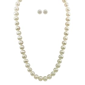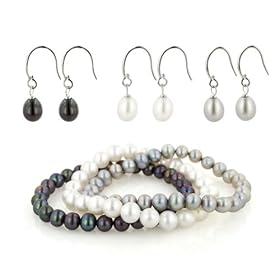 Freshwater Cultured Pearl Necklace, Stretch Bracelet and Dangle Earrings Set with Sterling Silver Clasp (8.5-10mm): Jewelry