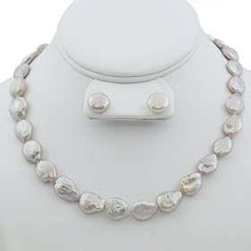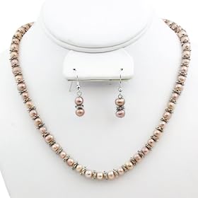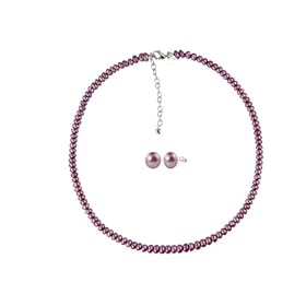 Lavender Freshwater Pearl Necklace Earrings Set 18": Jewelry