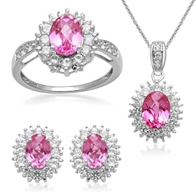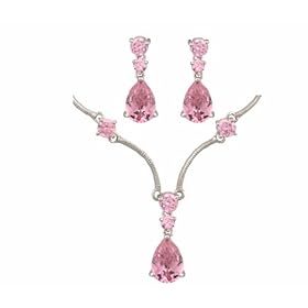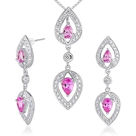Must Have Fabulous Pear Shape Created Pink Sapphire Pendant Earrings Set in Sterling Silver Rhodium Finish: Peora: Jewelry