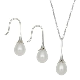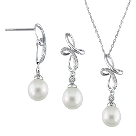 Diamond and Sterling Silver Infinity Flower Earring and Pendant Set with White Freshwater Drop Pearls: Pearlzzz: Jewelry