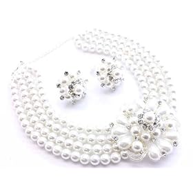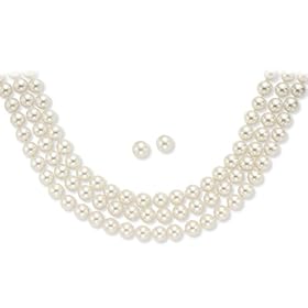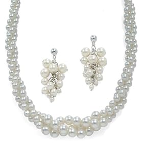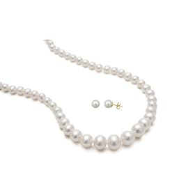 White Freshwater Cultured Pearl Mother-and-Daughter Necklace and Earring Set with Sterling Silver Clasp: Jewelry