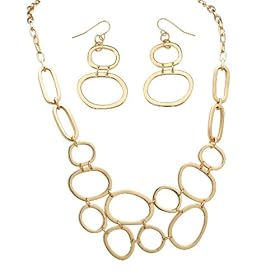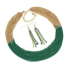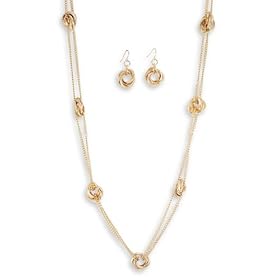 Gold Tone Double Chain Necklace Wire Dangle Earrings: Jewelry