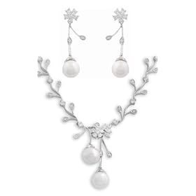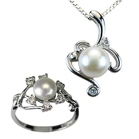 Entwining Vine Cultured Pearl Cubic Zirconia Platinum Overlay Sterling Silver Pendant Necklace 18" & Ring Size 8 Set, White: Dahlia: Jewelry