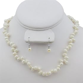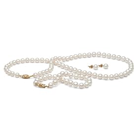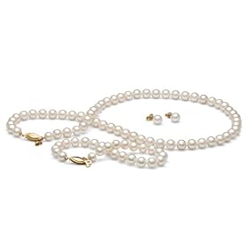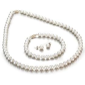 6.5-7.0 mm, White "Freshadama" Freshwater Pearl Set, 18-inch Necklace, 7.5-inch Bracelet, 14k White Gold: Jewelry