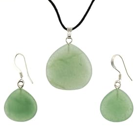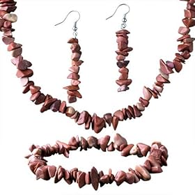 Pink Matrix Jasper Flatdrop Shaped Pendant and Earrings Set - 13x22mm Pendant, 11x17mm Earrings - Adjustable Cord Necklace: Jewelry
