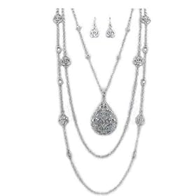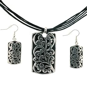 Fashion Costume Jewelry Woven Filigree Design Long Pendant Necklace and Earring Set: LaRaso: Jewelry