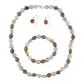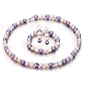 Baroque Multi Color White, Purple, and Lavender Freshwater Cultured Pearl Set, Sterling Silver Lobster Clasp, 8.5-9mm AA Quality Pearls, 18 Inch Necklace, 7 Inch Bracelet: Jewelry