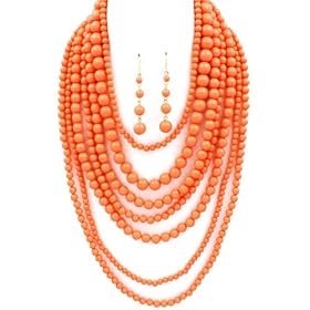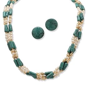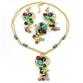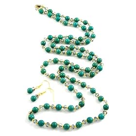 22" Fancy Multi-Color Turquoise CZ Abd Beads Necklace Earrings and Ring Set: Jewelry