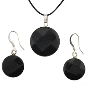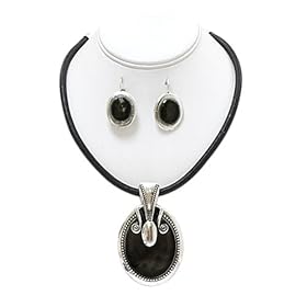 Large Oval Black Epoxy Pendant Necklace and Earrings Set Jewelry: Jewelry