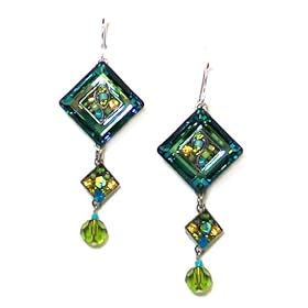 Firefly La Dolce Vita Elaborate Multicolor Earrings in Blue and Olivine Green: Jewelry