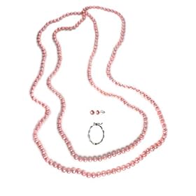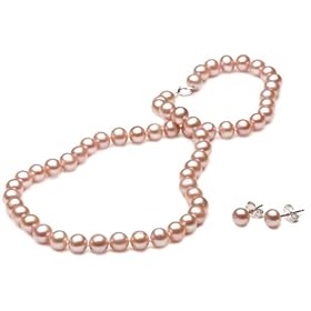 8-8.5mm Freshwater Cultured Blush Rose Pearl 80" Continuous Necklace with Stainless Steel Shortener and 8-8.5mm Matching Stud Earrings: Jewelry