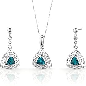 Filigree Design 1.50 carats Trillion Cut Sterling Silver Rhodium Finish London Blue Topaz Pendant Earrings Set: Peora: Jewelry