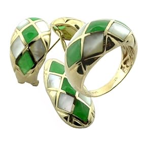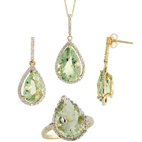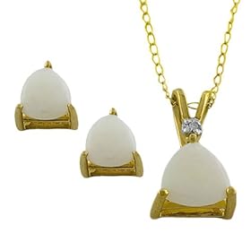 10 Karat Yellow Gold Trillion Opal Necklace And Earrings Set: Jewelry