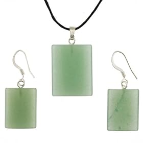 Blue Laugna Lace Agate Rectangle Pendant and Earring Set - Pendant (17x22mm), Earrings (14x19mm) - Adjustable Cord Necklace: Jewelry