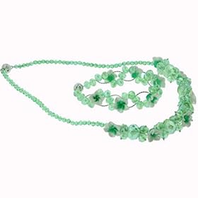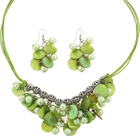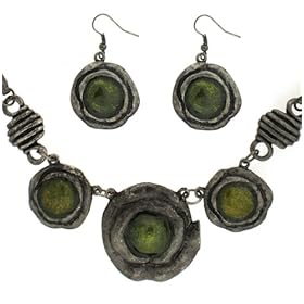 Ladies "Flora" Flower Necklace and Earring Set in Sparkling Olive Green: Jewelry