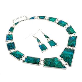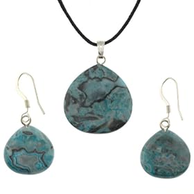 Blue Laugna Lace Briolette Shaped Pendant and Earrings Set - 22mm Pendant, 15mm Earrings - Adjustable Cord Necklace: Jewelry