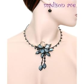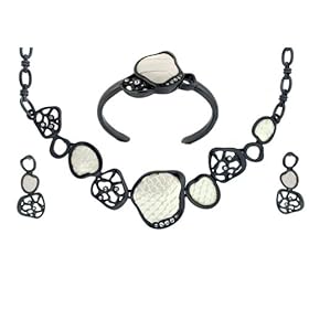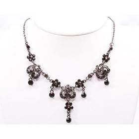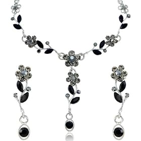 Black Diamond SWAROVSKI CRYSTALS Flower Petal Necklace And Earring Jewelry Set: Jewelry