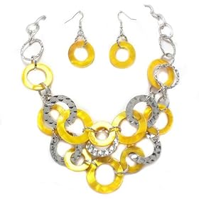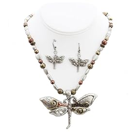 Tri Tone Dragonfly Statement Necklace Earrings Set Fashion Jewelry: Jewelry