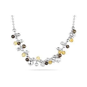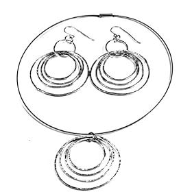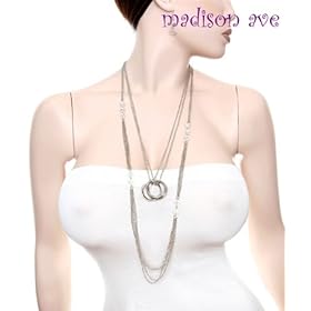 Double Ring Silver Tone Chain & Beads Necklace & Earring Set: Jewelry