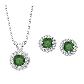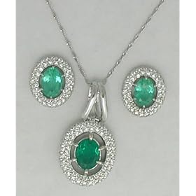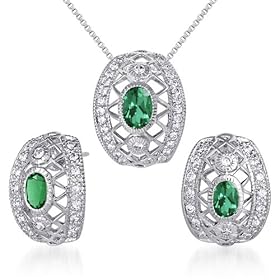 Elegant & Chic 1.75 carats Oval Shape Created Emerald Pendant Earrings Set in Sterling Silver Rhodium Finish: Peora: Jewelry
