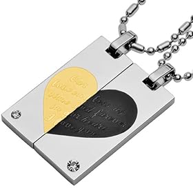 Endless Love Stainless Steel Black and Gold Heart Cubic Zirconia Pendant Necklace Couples Set 16" and 22" Chain: Dahlia: Jewelry